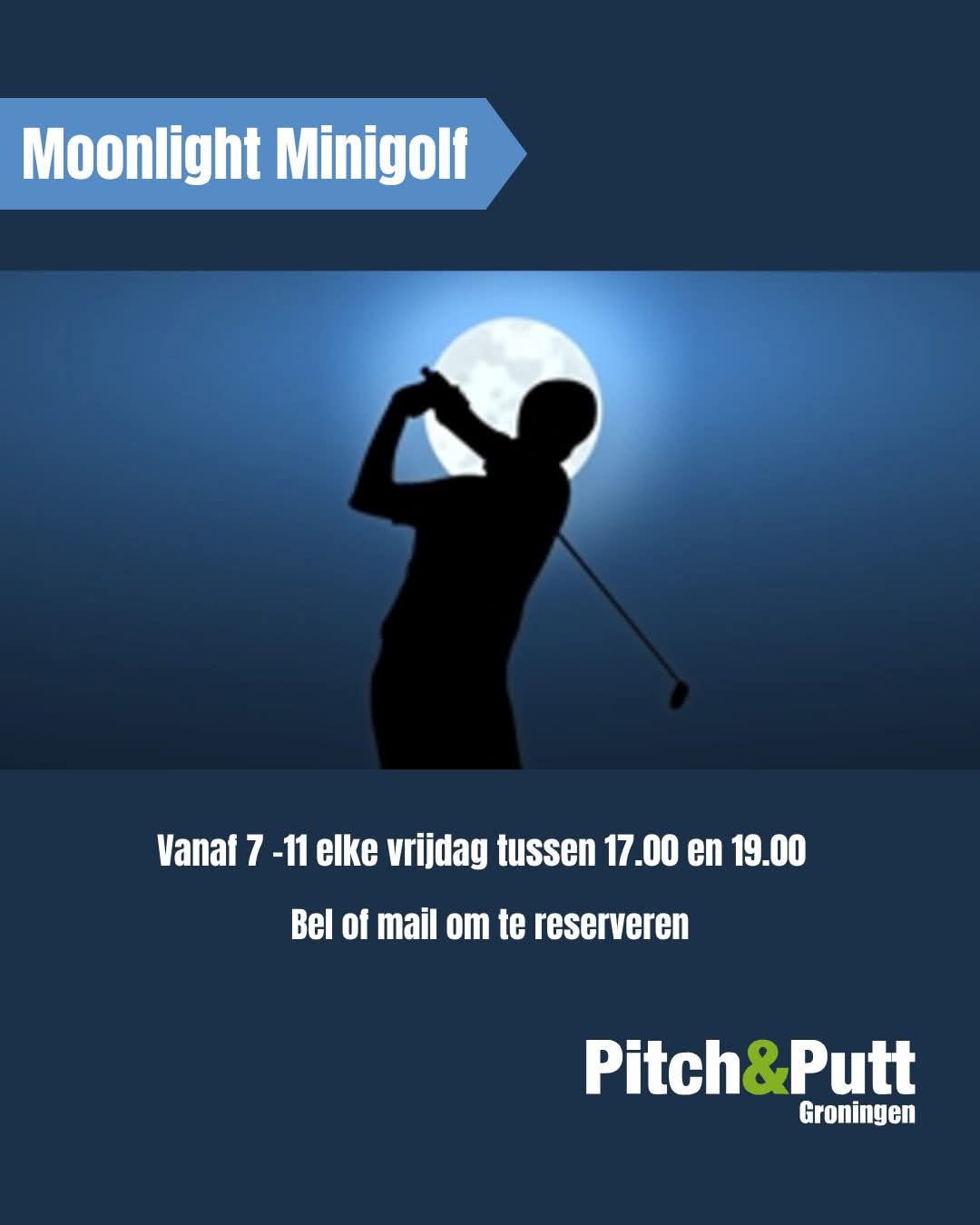 Vanaf nu elke vrijdag Minigolf in het donder! Durf jij het aan? Uiteraard met een beetje hulp van fakkels, een zaklamp en lichtgevende ballen. Starten kan tussen 17.00 en 19.00 uur De prijs is inclusief een lekker warm drankje naar keuze! Van 4 tot 12 jaar: 10,- pp Vanaf 12 jaar: 12,5 pp N.B. het gaat door vanaf 4 reserveringen